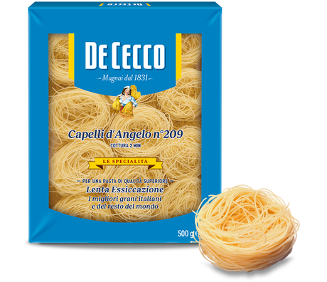 £2187£2403Unit price /UnavailableDE CECCO PASTA DI SEMOLA FORMATI SPECIALI CAPELLI D'ANGELO N.209 500 GR (8 in a box)