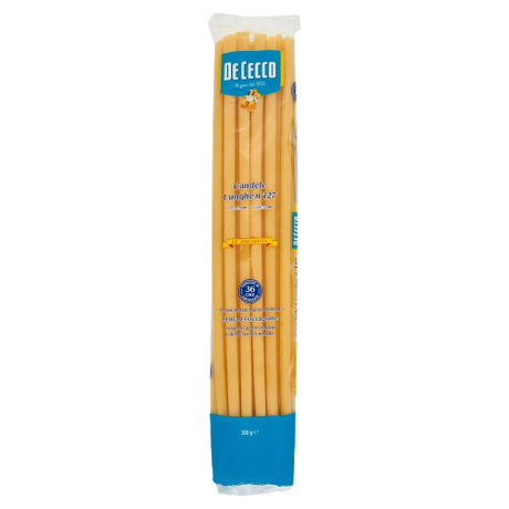 £2754£3382Unit price /UnavailableDE CECCO PASTA DI SEMOLA FORMATI SPECIALI CANDELE LUNGHE N.127 500 GR (12 in a box)