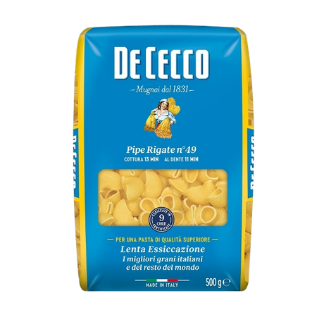 £2754£3382Unit price /UnavailableDE CECCO PASTA DI SEMOLA PIPE RIGATE N.49 500 GR (24 in a box)