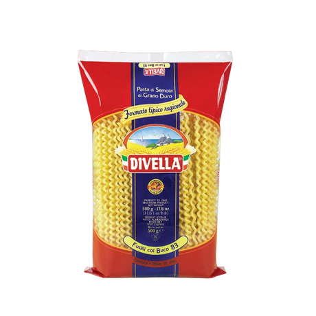 £4005Unit price /UnavailableDIVELLA PASTA DI SEMOLA FORMATI SPECIALI FUSILLI BUCATI LUNGHI N.83 500 GR (20 in a box)