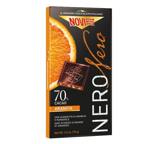 £3471Unit price /UnavailableNOVI NERO NERO CHOCOLATE BAR EXTRA DARK 70% ORANGE AND ALMOND 75 GR (20 in a box)