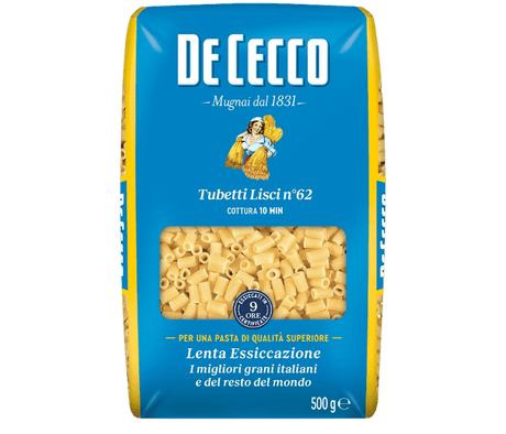 £2754£3382Unit price /UnavailableDE CECCO PASTA DI SEMOLA TUBETTI LISCI N.62 500 GR (24 in a box)