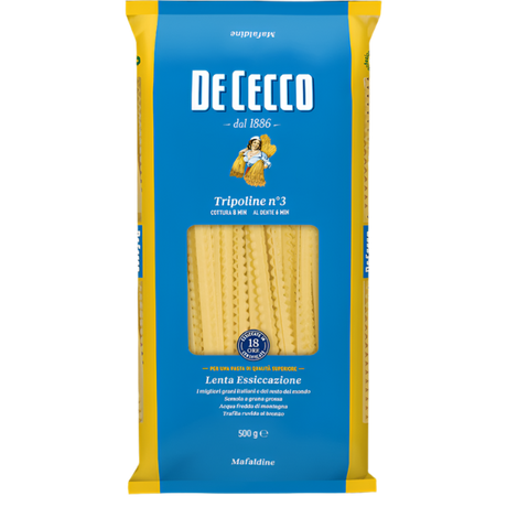 £2754£3382Unit price /UnavailableDE CECCO PASTA DI SEMOLA TRIPOLINE N.3 500 GR (24 in a box)