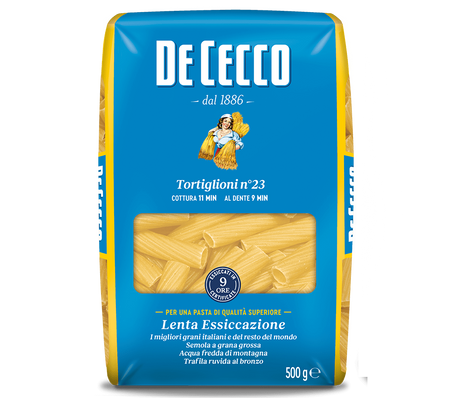 £2754£3382Unit price /UnavailableDE CECCO PASTA DI SEMOLA TORTIGLIONI N.23 500 GR (24 in a box)