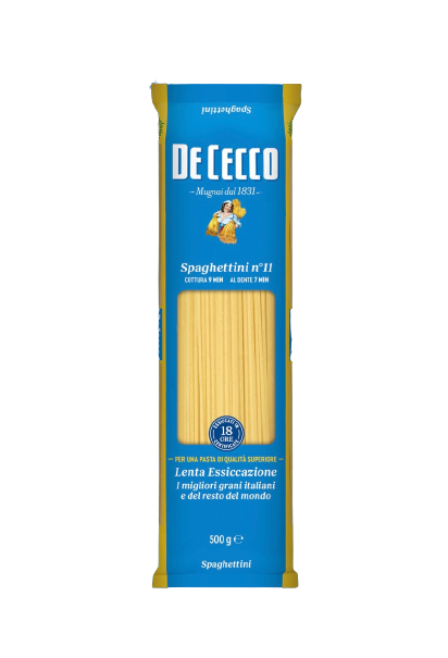 £2754£3382Unit price /UnavailableDE CECCO PASTA DI SEMOLA SPAGHETTINI N.11 500 GR (24 in a box)