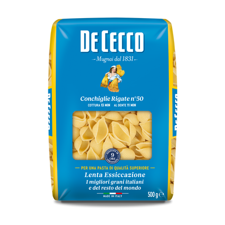 £2754£3382Unit price /UnavailableDE CECCO PASTA DI SEMOLA CONCHIGLIE RIGATE N.50 500 GR (24 in a box)