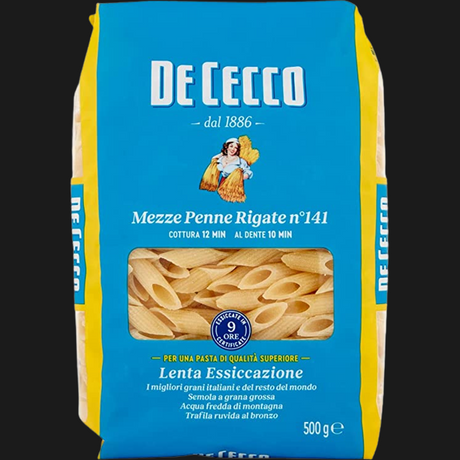 £2754£3382Unit price /UnavailableDE CECCO PASTA DI SEMOLA MEZZE PENNE RIGATE N.141 500 GR (24 in a box)