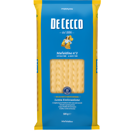 £2754£3382Unit price /UnavailableDE CECCO PASTA DI SEMOLA MAFALDINE N.2 500 GR (24 in a box)
