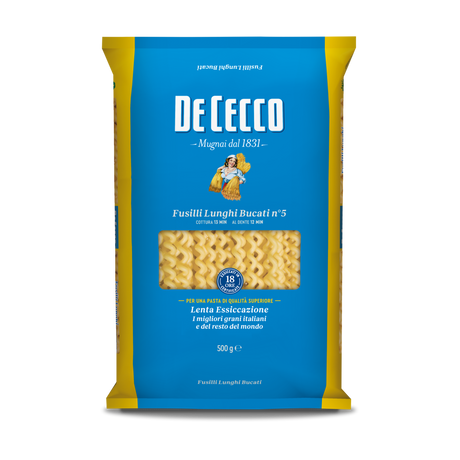£16860£18819Unit price /UnavailableDE CECCO PASTA DI SEMOLA FUSILLI LUNGHI BUCATI N.5 500 GR (24 in a box)
