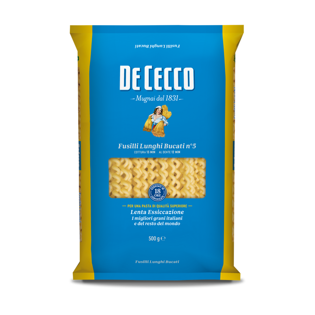 De cecco pasta di semola lenta essiccazione fusilli lunghi bucati n.5 500gr.