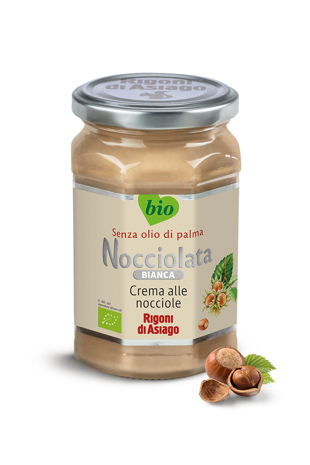Nocciolata Bianca is an organic cream spread with hazelnuts and milk. An explosion of taste, with 30% hazelnuts. Nocciolata BIANCA was born in 2018 to meet the needs of the modern consumer: all the goodness of hazelnuts, for a natural break. It’s 100% organic, palm oil-free, gluten-free.