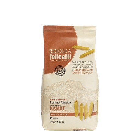 £5323Unit price /UnavailableFELICETTI ORGANIC PASTA DI SEMOLA KAMUT PENNE RIGATE 500 GR (12 in a box)