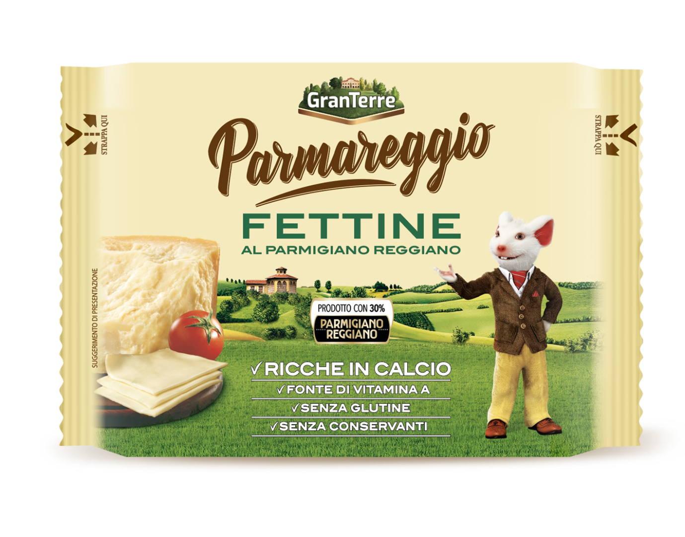 GranTerre ,Parmareggio formaggio snack, le fettine, simili a sottilette al gusto parmiggiano reggiano 150gr.