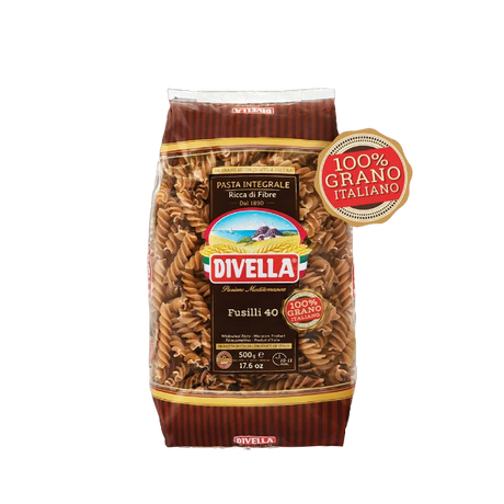 £1248Unit price /UnavailableDIVELLA PASTA WHOLEMEAL FUSILLI N.40 500 GR (24 IN A BOX)