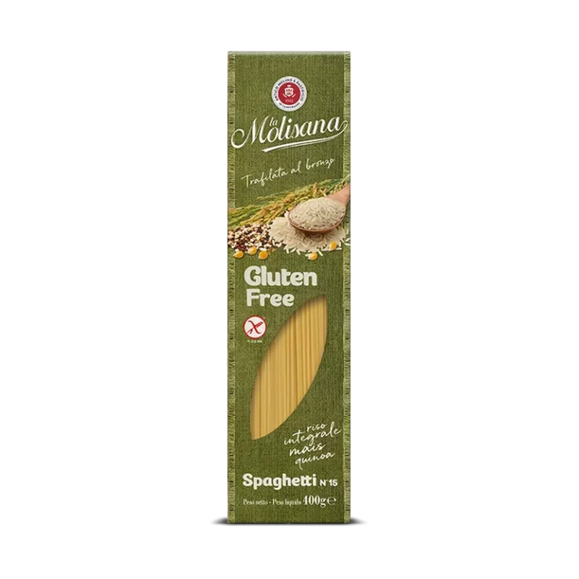 La molisana, linea pasta senza glutine, gli spaghetti n.15 fatti con riso integrale, mais e quinoa, 400gr.