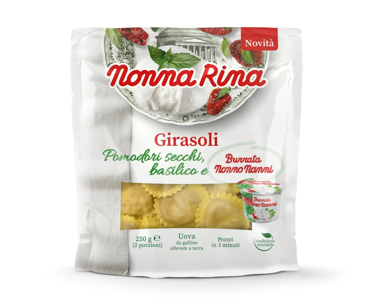 NONNA RINA STUFFED PASTA GIRASOLI WITH DRIED TOMATOES, BASIL AND BURRATA 250 GR (8 in a box)