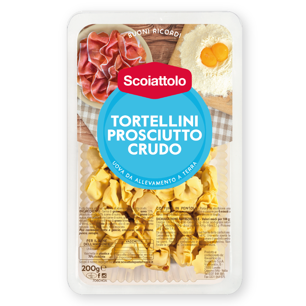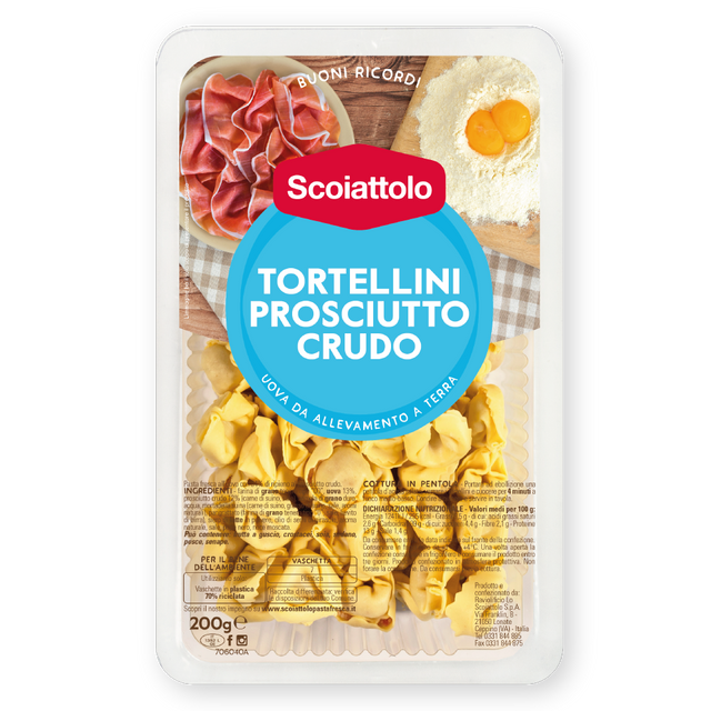 Scoiattolo buoni ricordi, pasta fresca all'uovo, pasta ripiena, i tortellini con prosciutto crudo , 200gr.