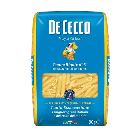 £3711£4352Unit price /UnavailableDE CECCO PASTA DI SEMOLA PENNE RIGATE N.41 500 GR (24 in a box)