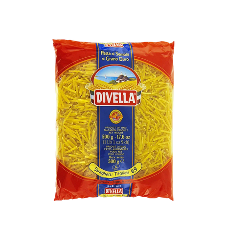 £2698£3499Unit price /UnavailableDIVELLA PASTA DI SEMOLA SPAGHETTI TAGLIATI N.69 500 GR (24 in a box)