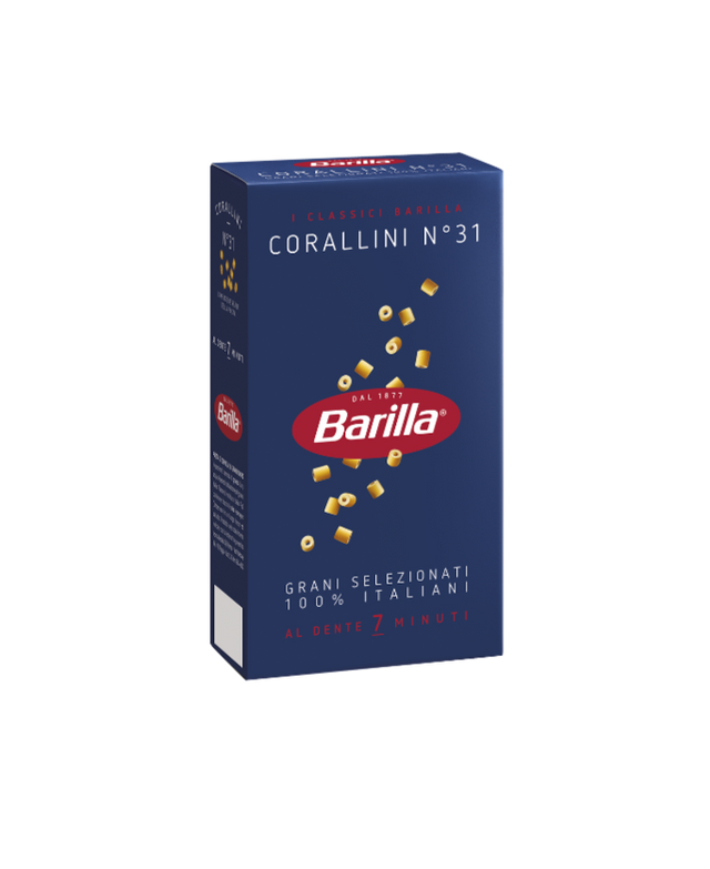 Barilla Corallini have the essential and elegant appearance of tiny tubes, very short and smooth in shape. Skilled in retaining the broth or the past, which are channeled into their tiny opening, they represent a refined alternative in the choice of pasta.