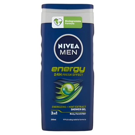 £2652Unit price /UnavailableNIVEA MEN SHOWER BATH BODY AND SHAMPOO ENERGY 3in1 250 ML (12 in a box)
