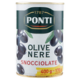 Ponti le olive, olive nere snocciolate, in lattine da 400gr.