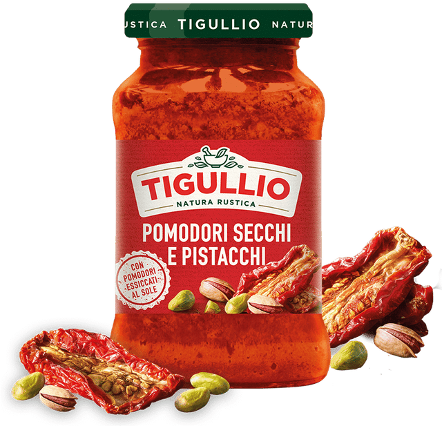 The unmistakable flavor of dried tomatoes is combined with the enveloping sweetness of pistachios. A special encounter between salty and sweet that surprises at the first taste.