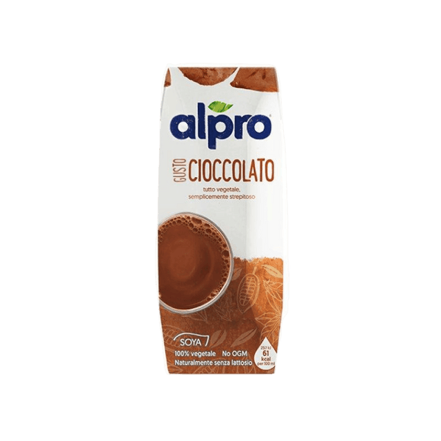 Alpro linea lunga conservazione, bevanda vegetale a base di soia, latte di soia al gusto cioccolato uht , brick 25cl.