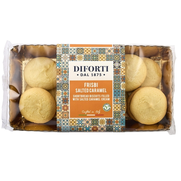 DIFORTI DESSERT BISCUITS FRISBI FILLED SALTED CARAMEL CREAM 200 GR (6 in a box)
