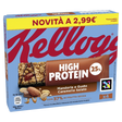 Kelloggs , high protein, barrette di frutta secca di avena e mandorle con caramello salato, 4 snacks, 140gr.