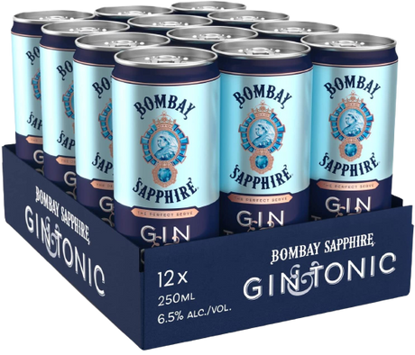 £6375Unit price /Unavailable BOMBAY SAPPHIRE GIN TONIC COKTAIL DRINK CANS 250 ML (12 in a box)